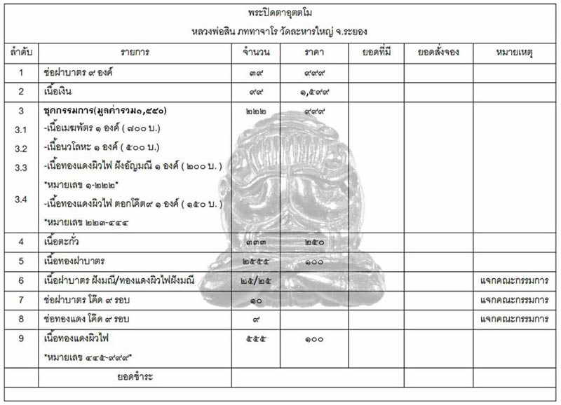 รายการที่2 เนื้อเงิน มียอด5องค์ๆละ 1800