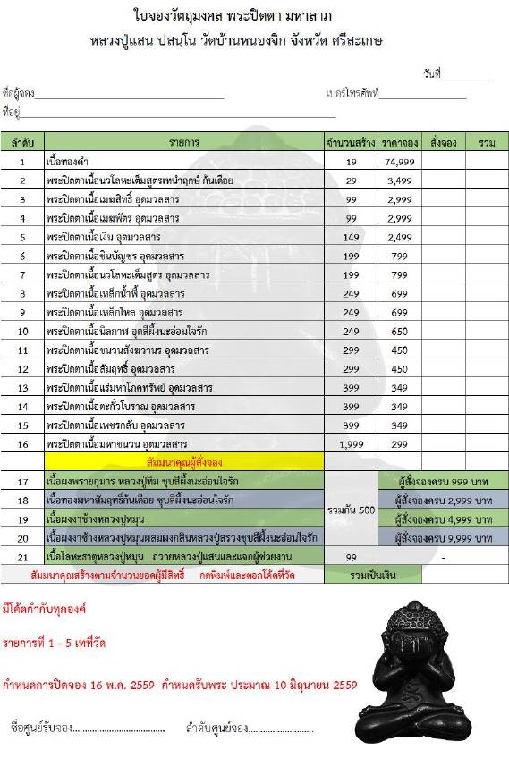 รายการที่เปิดจองมีรายการเดียวนะครับ (เนื่องจากลูกค้าจองแล้วไม่มีเงินจ่าย) ผู้ที่จะจองขอคนที่พร้อมนะครับ