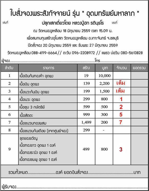 จองพระสังกัจจายน์ รุ่น อุดมทรัพย์มหาลาภ เสกเดี่ยวโดยหลวงปู่ฮก รตินธโร ณ.วัดหนองงูเหลือม วันที่ 18 มิ.ย.59 เวลา 15.09 น.