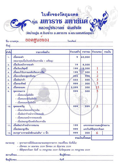 จำนวนจองและราคาจองระบุไว้ในรูปแล้วครับ เป็นราคาออกจากวัดครับ