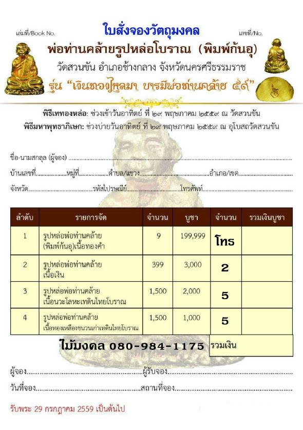 ***ลูกค้านอกเวปโทรสั่งจองได้ที่เบอร์ 080-984-1175***