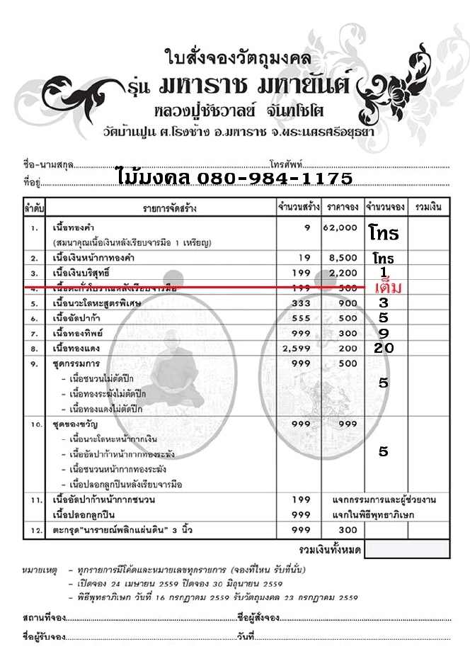 ***ลูกค้านอกเวปโทรสั่งจองได้ที่เบอร์ 080-984-1175***