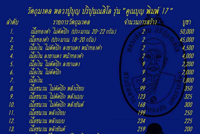7.เนื้อเงิน สร้าง 9 เหรียญมียอดพิมพ์ละ 1 เหรียญๆละ 1900 บาท