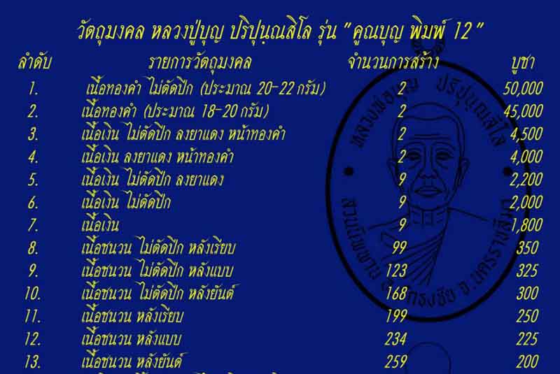 11.ชนวน หลังเรียบ สร้าง 199 เหรียญมียอดพิมพ์ละ 7 เหรียญๆละ 250 บาท