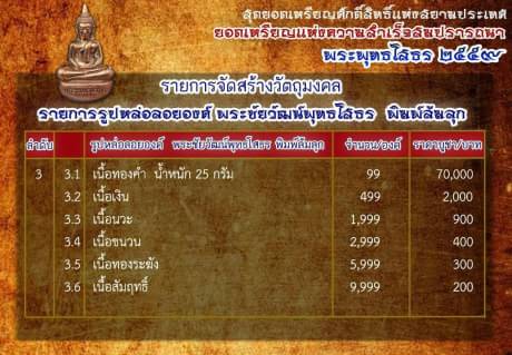 3.5 เนื้อทองระฆัง จำนวน 10 องค์ ราคาองค์ละ 300 บาท
