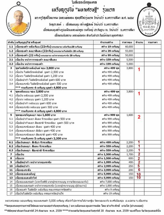 กำหนดรับรับวัตถุมงคลตั้งแต่ 30 กันยายน 59