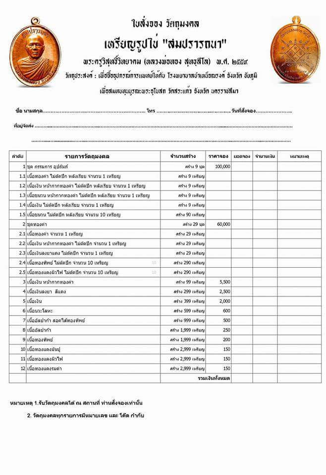 | หัวข้อกระทู้ : เปิดแบ่งยอดจองเหรียญสมปราถนา หลวงพ่อทอง สุทธิสีโล รายการเนื้ออัลปาก้าราคาวัด |