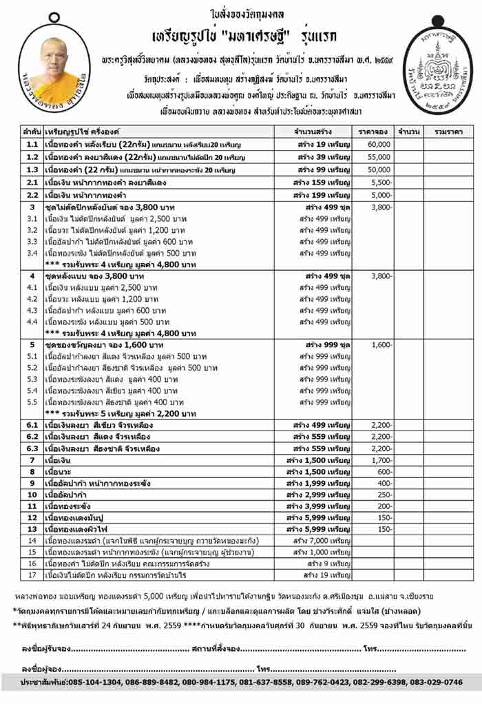 สนใจลงชื่อจองบูชาได้เลยครับ จองก่อนได้รับสิทธิ์ก่อนครับ