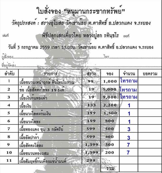 เปิดจอง "หนุมานกระชากทรัพย์" ปลุกเสกเดี่ยวโดย หลวงปู่ฮก รตินฺธโร