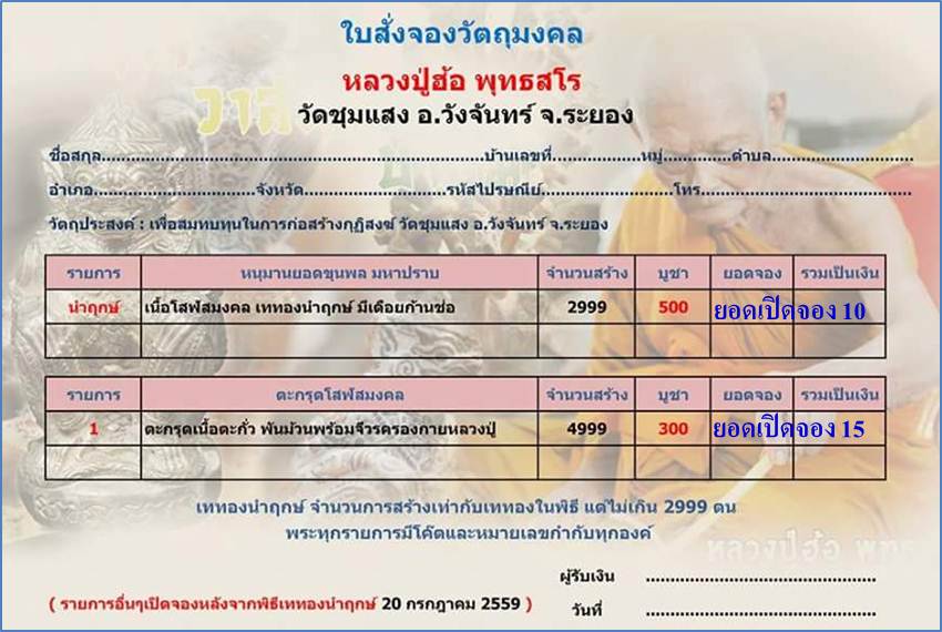 ค่าจัดส่ง 100 บาท (กำหนดรับพระ 30 ก.ค.59)