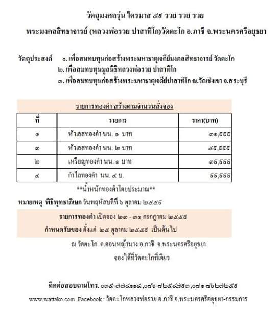 วัตถุมงคล รุ่น ไตรมาส 59 รวย รวย รวย วัดจัดสร้างเอง