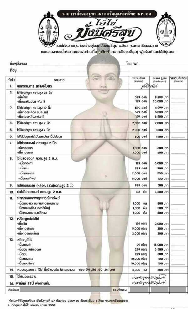 [[[เปิดจอง]]]พี่ไข่ รุ่น"มั่ง มี ศรี สุข" วัดสระสี่มุม จังหวัดนครศรีธรรมราช