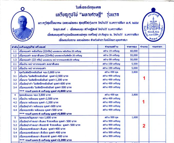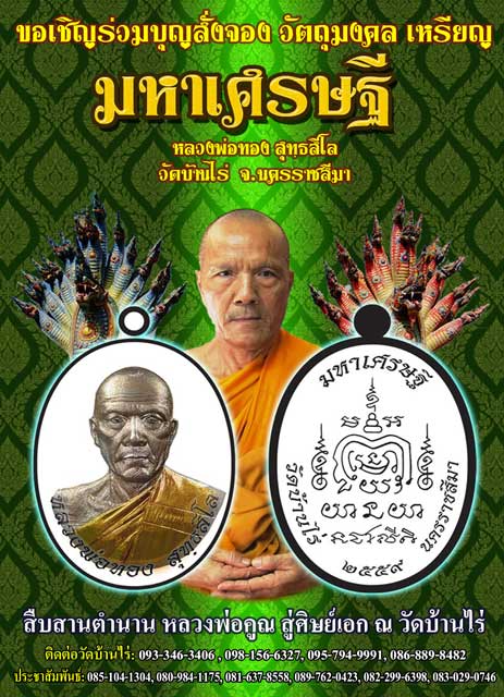 จองเหรียญรูปไข่ "มหาเศรษฐี" รุ่นแรก พระครูวิสุทธิ์วิทยาคม (หลวงพ่อทอง สุทธสีโล) วัดบ้านไร่ จ.นครราชสีมา พ.ศ 2559