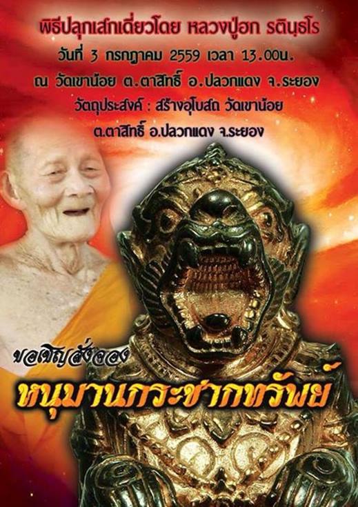 เปิดจองโค้งสุดท้าย "หนุมานกระชากทรัพย์" ปลุกเสกเดี่ยวโดย หลวงปู่ฮก รตินฺธโร