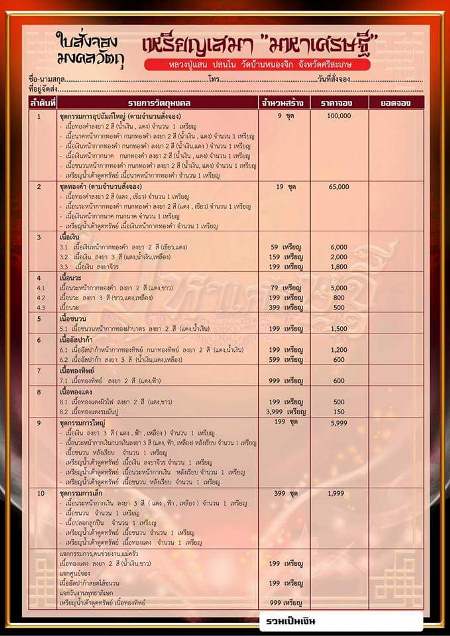 จัดเป็นคู่ คู่ละ 11,000 บาท รับพระตามรายการนี้