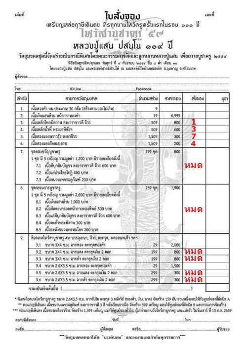 *** รายการเปิดจอง มีดังนี้