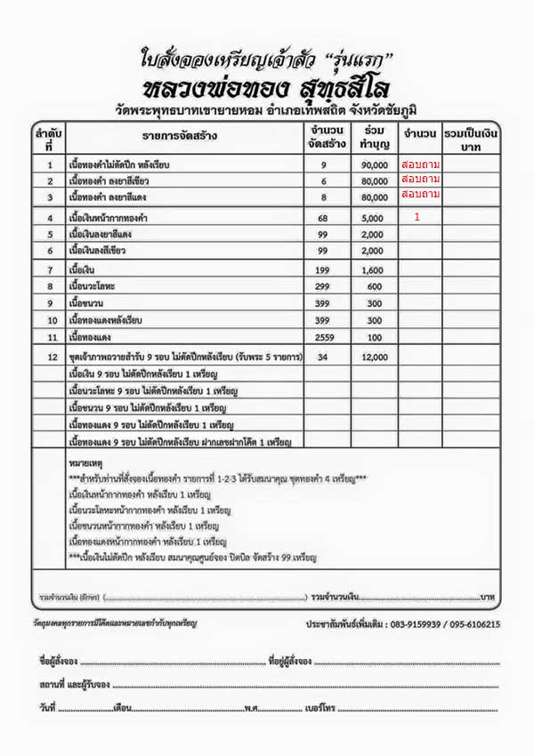 รายการที่ 4 เนื้อทองคำลงยาสีแดง ราคาเหรียญละ 80,000 บาท สอบถาม