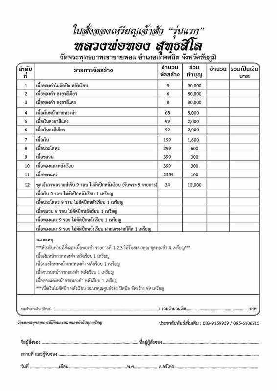 เปิดจอง หลวงพ่อทอง รุ่นเจ้าสัว