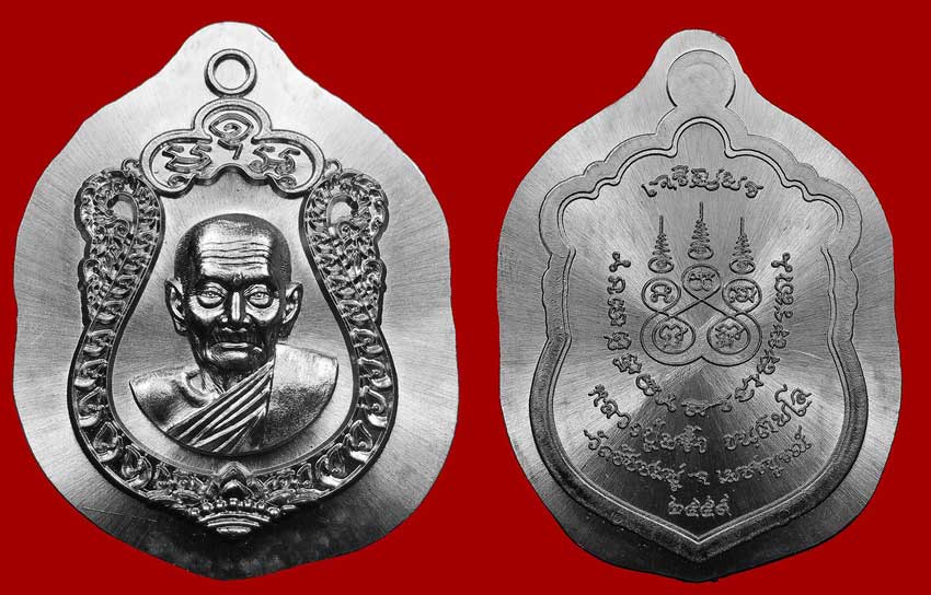 1.2 เนื้อเงินหลังอุดผงว่าน 108 ฝังรูปเหมือนตัดชิด มียอด 1 เหรียญๆ ละ 1,950 บาท (สร้างเพียง 22 เหรียญ)