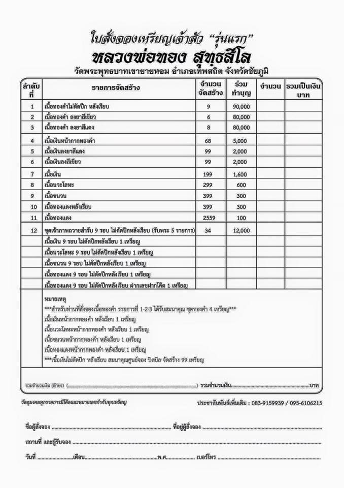 รายการที่ 11 เนื้อทองแดง มียอด 20 เหรียญ ราคาเหรียญละ 150 บาท