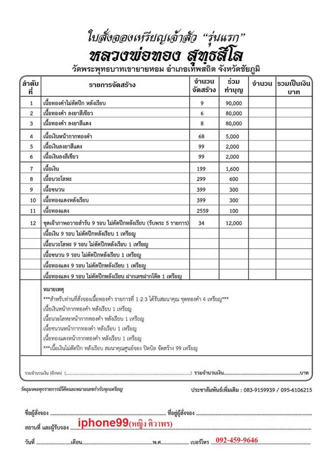 12.ชุดเจ้าภาพถวายสำหรับ9รอบไม่ตัดปีกหลังเรีบ (สอบถาม)