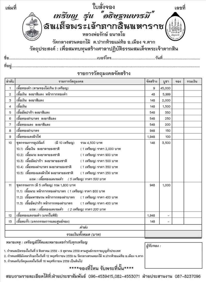 [[[เปิดจอง]]]สมเด็จพระเจ้าตากสินมหาราช รุ่น"อธิษฐานบารมี" หลวงพ่อรักษ์ อนาลโย วัดสุทธาวาส วิปัสสนา จังหวัดพระนครศรีอยุธยา