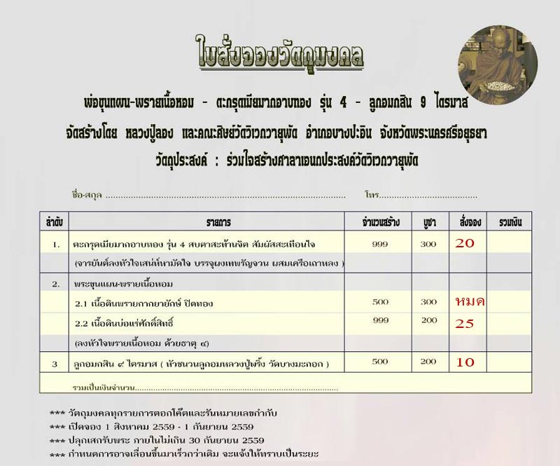จองกันได้ตามศรัทธาครับ ใครจองก่อนได้ก่อนจนกว่าจะหมด