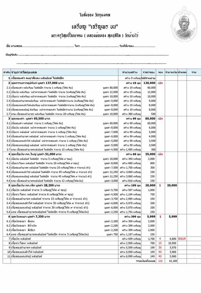 เปิดจอง"เจริญพรบน"พระครูวิสุทธิ์วิทยาคม(หลวงพ่อทอง สุทฺธสีโล)วัดบ้านไร่