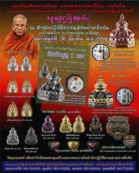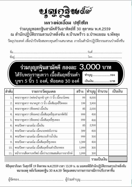 ***โอนเงินภายใน 2 วัน,ราคาจอง+ค่าจัดส่ง 100/ท่าน,ค่าส่งชุดกฐินและพระบูชา 150/ชุด***