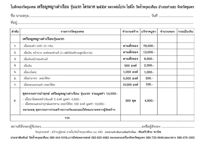 - รายการที่ 8 ชุดกรรมการนำฤกษ์ ราคาชุดละ 4,900 บาท มียอด 1 ชุด