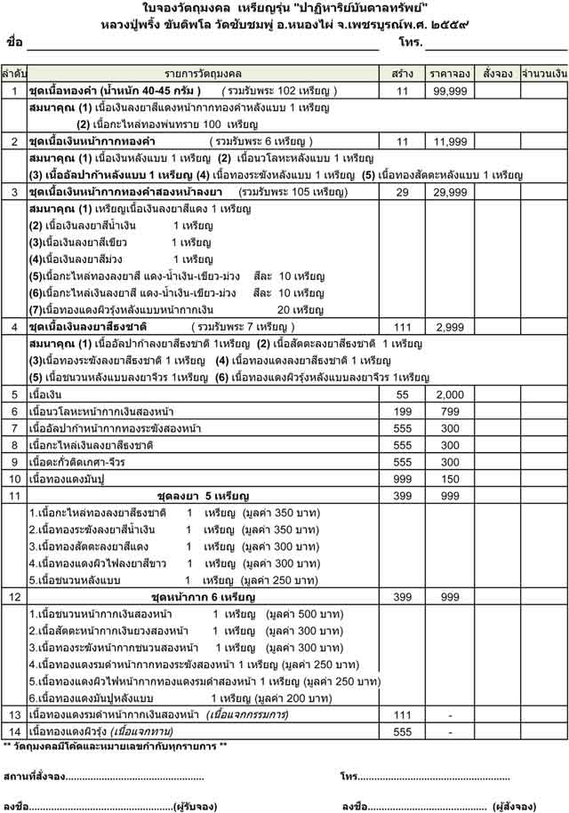 รับวัตถุมงคล : 10 กันยายน 2559