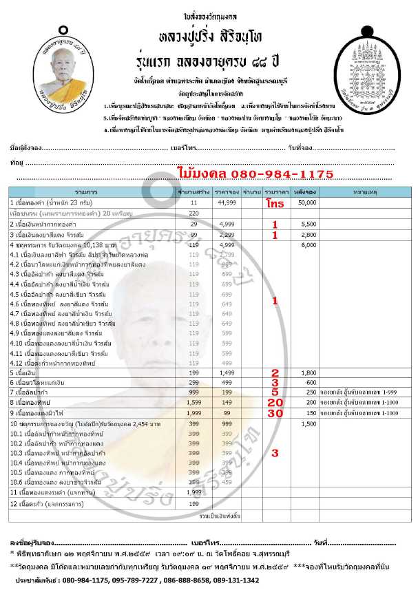 ***ลูกค้านอกเวปโทรสั่งจองได้ที่เบอร์ 080-984-1175***