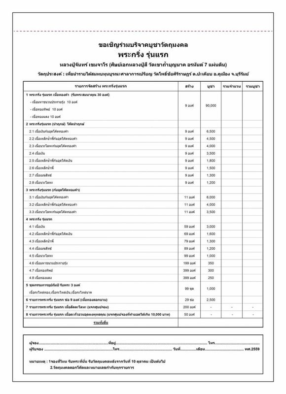 รายการที่ 5 ชุดกรรมการอุปถัมภ์ รับพระ 3 องค์ ราคาชุดละ 1,000 บาท