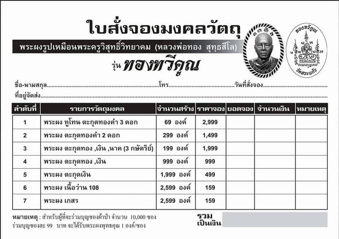 รายการที่ 4.พระผง ตะกรุดทองคำ,เงิน ราคา 999 บาท มียอด 5 องค์