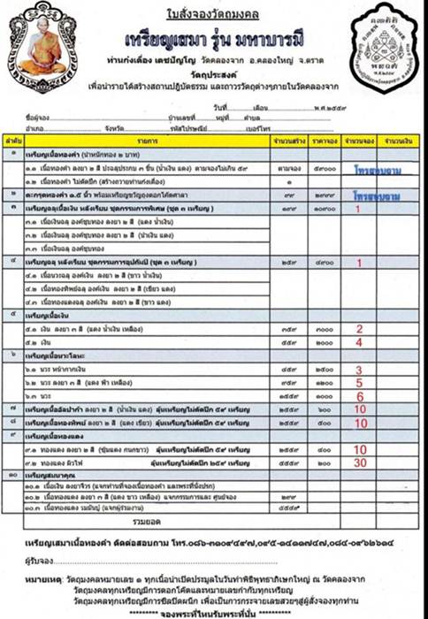 รายการที่ 4 เหรียญฉลุ ชุดกรรมการอุปถัมภ์ (รับพระ 3 เหรียญ) ราคาชุดละ 4,900 บาท มียอด 1 ชุด
