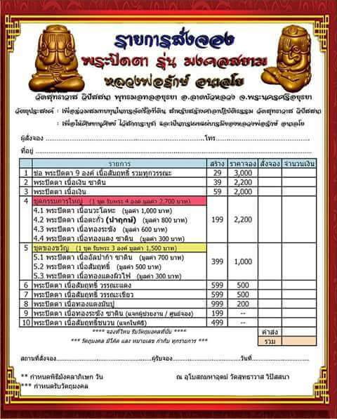 เปิดจองพระปิดตาหลวงพ่อรักษ์ อนาลโย รุ่นมงคสยาม ราคาจองยอดมาดังนี้