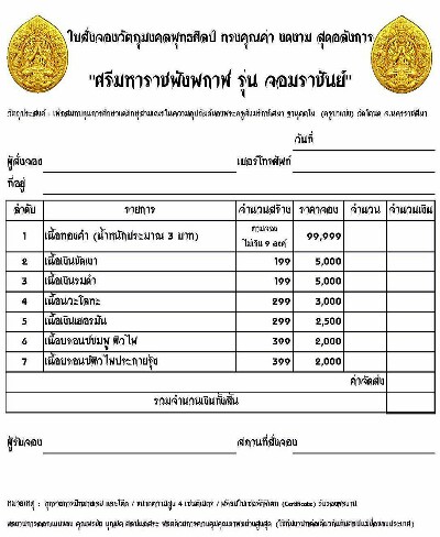 หมายเหตุ.วัตถุมงคลมีขนาดความสูง 4 เซนติเมตร ทุกชิ้น ผลิตด้วยการควบคุมคุณภาพอย่างสูงสุด ทุกรายการมีหมายเลข และโค๊ด พร้อมใบรับรองผลงาน เพื่อความเป็นหนึ่งเดียว