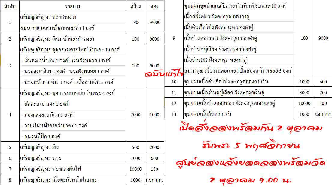 - เหรียญเจริญพรบนเนื้อตะกั่วหน้าฝาบาตร มี 9 เหรียญๆละ 900 บาท