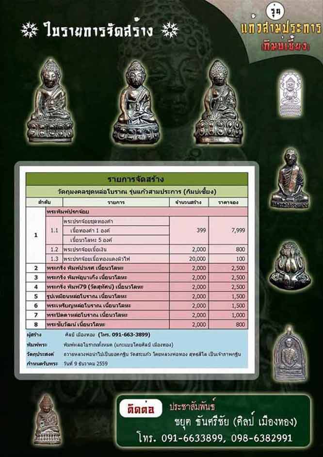 เปิดจอง...วัตถุมงคลชุดหล่อโบราณ หลวงพ่อทอง รุ่นแก้วสามประการ (กิมบ่เซี้ยง) กฐินวัดสระแก้ว
