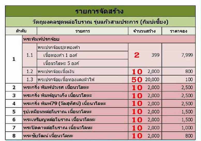 เปิดจอง...วัตถุมงคลชุดหล่อโบราณ หลวงพ่อทอง รุ่นแก้วสามประการ (กิมบ่เซี้ยง) กฐินวัดสระแก้ว