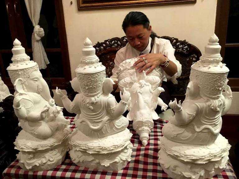 ขออนุญาติท่านอาจารย์สุวัฒน์ "แบ่งปันสิทธิ์"พระพิฆเนศเนื้อหินอ่อนเทียมสีขาวนวล และทำสีเหลือบทอง