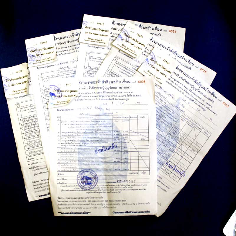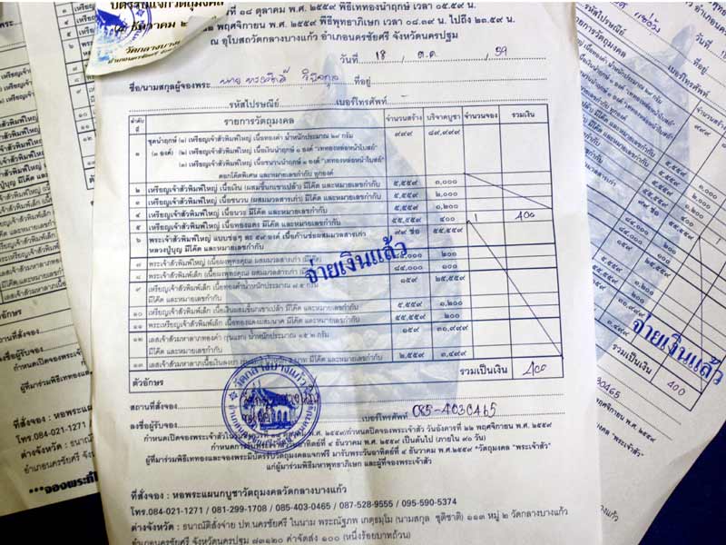 ใบจองจากทางวัด " เจ้าสัว 4 วัดกลางบางแก้ว " ท่านสามารถรับพระ ด้วยตัวท่านเอง ได้ที่วัดกลางบางแก้ว จัดส่งให้ฟรี EMS