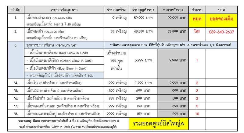 เนื้อเงินลงยา 3 เหรียญ 5,999 บาท แถมเหรียญผ้าป่าสามัคคี เนื้ออัลปาก้า ไม่ตัดปีก 9 รอบ อีก 1 เหรียญ