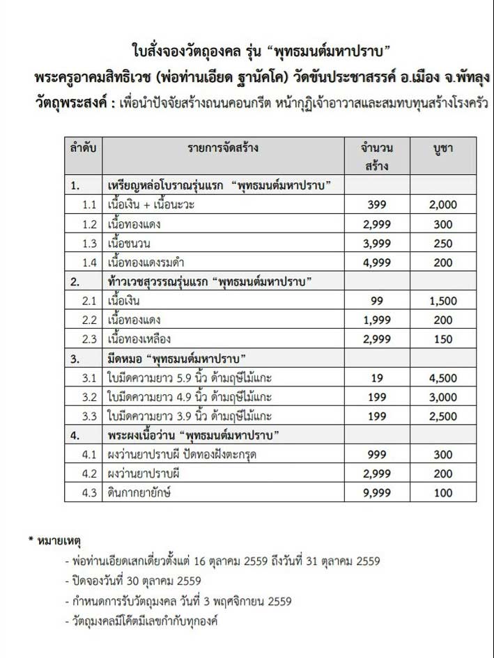 [[[เปิดจอง]]]พ่อท่านเอียด รุ่น"พุทธมนต์ มหาปราบ" วัดขันประชาสรรค์ จังหวัดพัทลุง