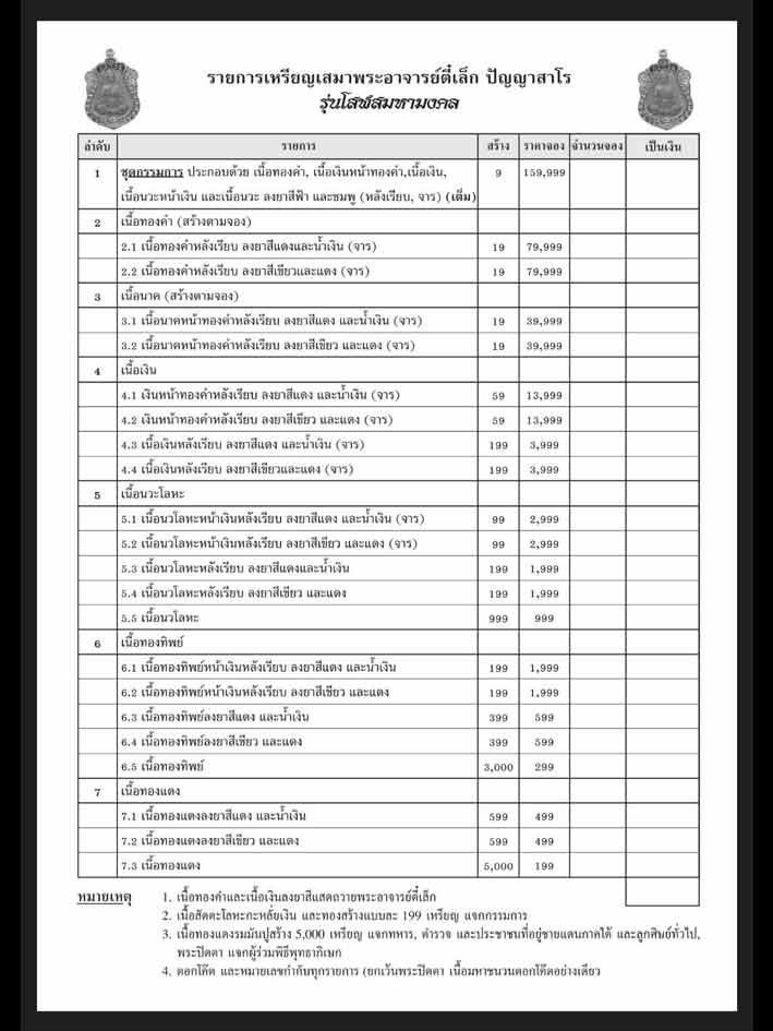 [[[เปิดจอง]]]อาจารย์ตี๋เล็ก รุ่น"โสฬสมหามงคล" วัดเขาสุมะโน จังหวัดเพชรบูรณ์