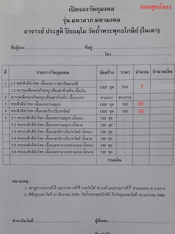 ***จอง3หรือ4อย่างไดอย่างหนึ่ง10องค์ก็ได้แถมรายการที่5 หรือ จอง 3กับ4รวมกันได้10องค์ก็ได้แถมรายการที่5***