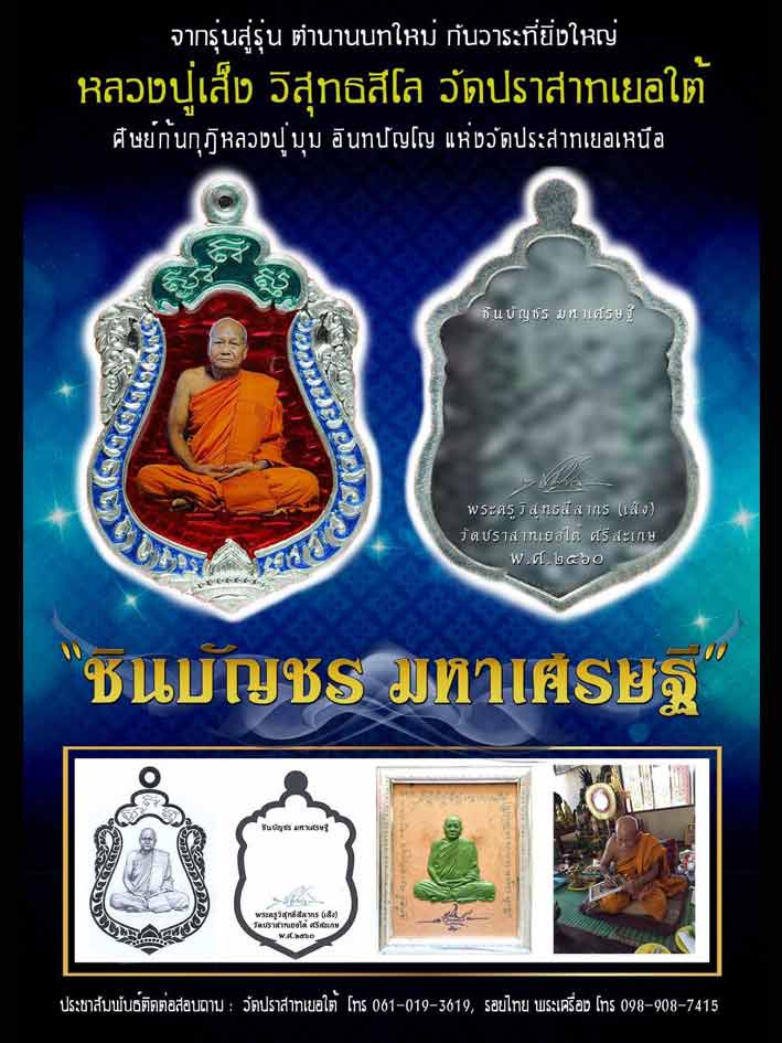 ***เปิดจอง***หลวงปู่เส็ง รุ่น"ชินบัญชร มหาเศรษฐี" วัดปราสาทเยอร์ใต้ จังหวัดศรีสะเกษ