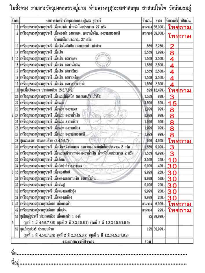 เปิดจองราคาวัดทุกรายการครับ