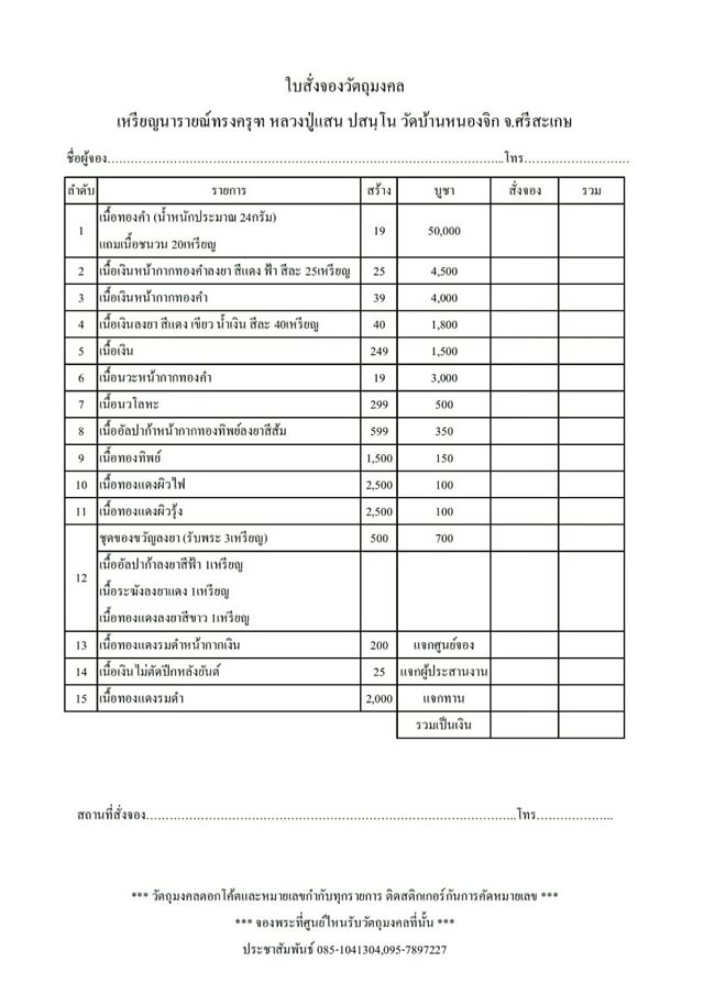ค่าส่ง 100 บาท ** รายการอื่นสอบถาม**