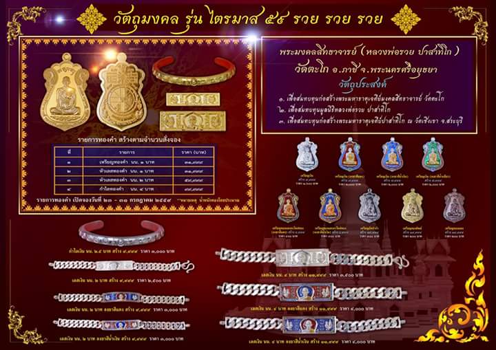 ทางวัดตะโกเปิดให้เช่าวัตถุมงคลที่เหลือ ในวันที่ 1 ธ.ค. 59 มีรายการดังนี้